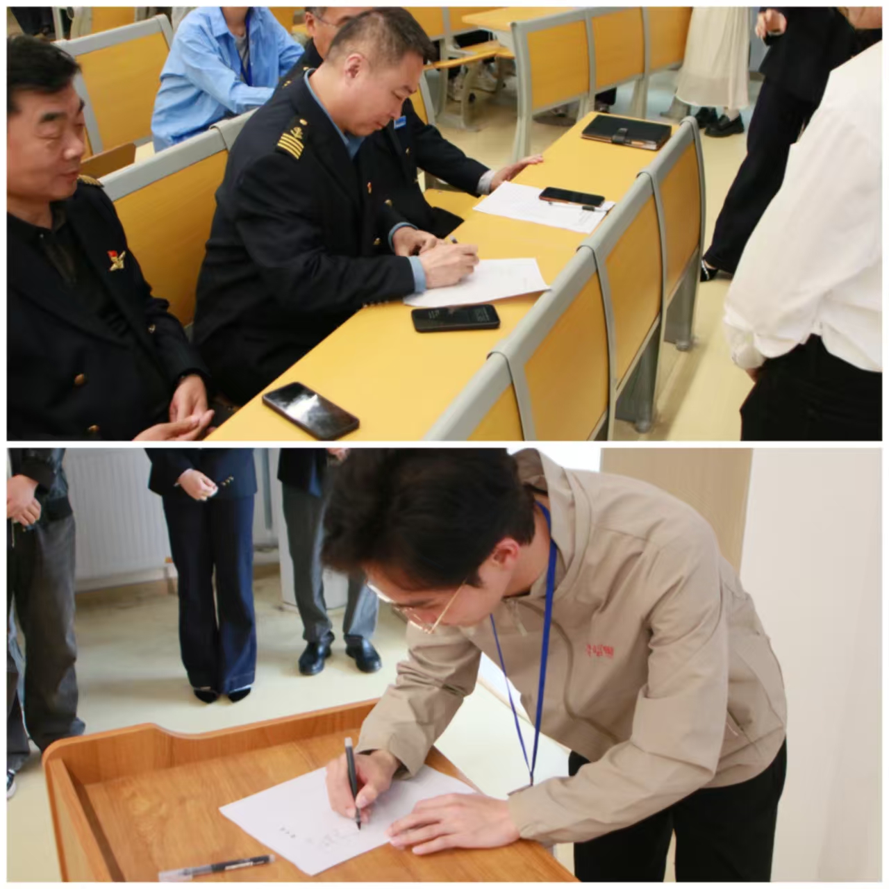 为将科学家精神内化于心、外化于行,活动进入青春誓言环节。学生代表闫帅浩同学宣读海洋强国青春承诺书,号召全体同学以先进为榜样,坚定理想信念,勤学专业知识,勇担时代使命,以实际行动守护蓝色国土、助力海洋强国建设。承诺书宣读完毕,与会领导、教师代表与学生代表依次上台,郑重签署承诺书,以签名为誓,明确责任担当。
